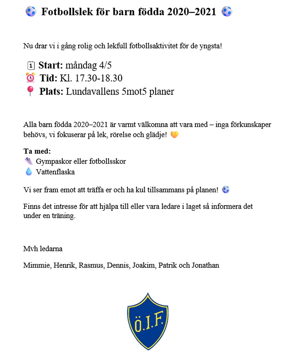 Vi kommer att gå ut med kallelser som till träningar för samtliga...